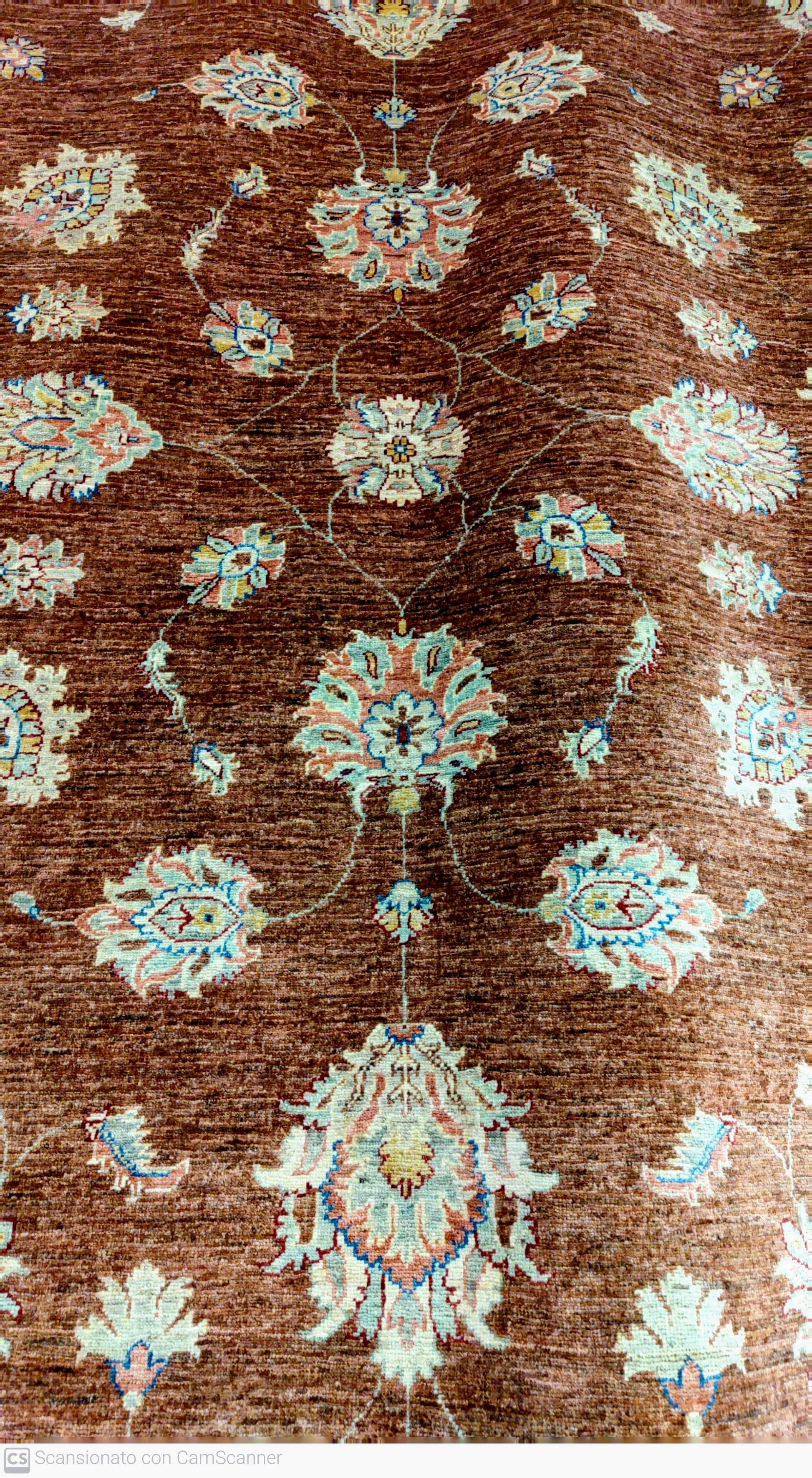 The Gold Border with Brown Base Floral Design Asla Caucaso Pakistan is a beautiful and unique carpet that is perfect for any room of the house.