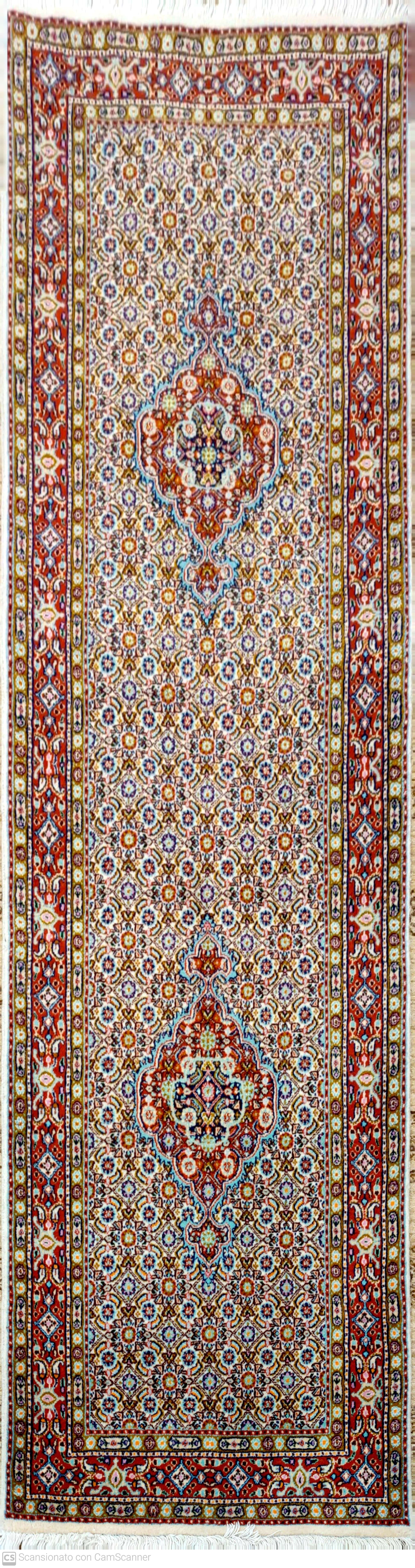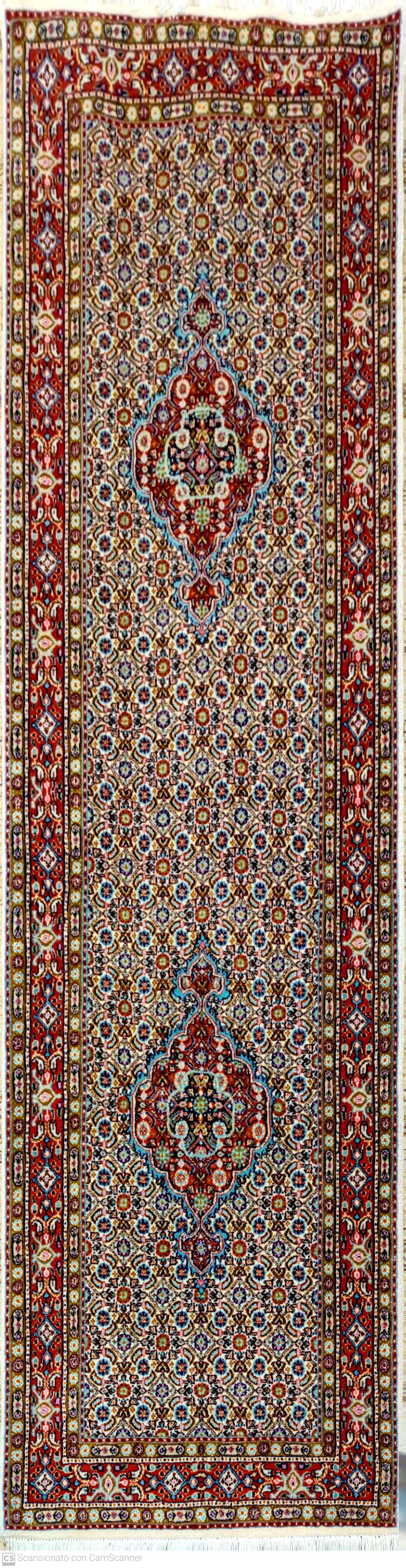 Moud rugs are a type of Persian rug that is typically hand-knotted and found in the northwest of Iran. It is a type of rug that has been around for centuries and is highly prized for its intricate patterns, vibrant colors, and dense wool. . The Moud rugs are known for their unique design and craftsmanship, which is often made with a combination of wool, cotton and/or silk. The patterns on the rugs are often intricate and feature beautiful floral motifs, geometric shapes, and traditional symbols. There are also Moud rugs that feature traditional Persian motifs such as birds, animals, and trees. The Moud rugs are also known for their durability and wearability. The wool used in making the rug is of high quality, making it strong and resilient. It is also known for its softness and comfort, making it a great choice for high-traffic areas. The Moud rugs have been around for centuries, with the oldest surviving examples dating back to the 16th century. The rugs were popular among the Persian elite and have been prized by collectors ever since. Today, Moud rugs are still popular among collectors and interior design enthusiasts, who appreciate their quality and beauty.