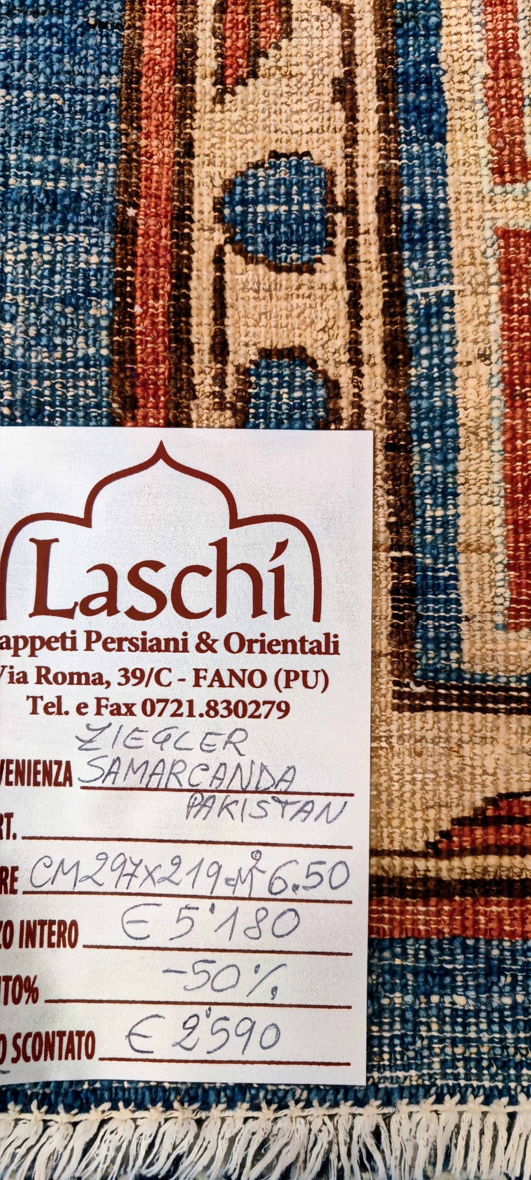 The Ziegler Samacanda rug, hand-made in Pakistan, is a masterpiece that embodies the rich heritage of traditional rug weaving. Crafted with utmost care and precision, this rug showcases a timeless and elegant design that is sure to enhance any living space.